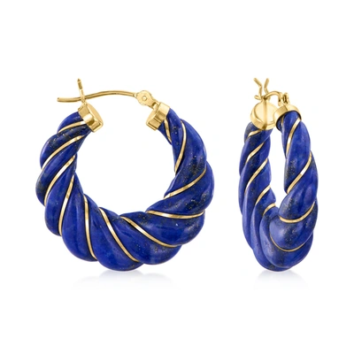 Carved Lapis Hoop Earrings With 14kt Yellow Gold In Blue