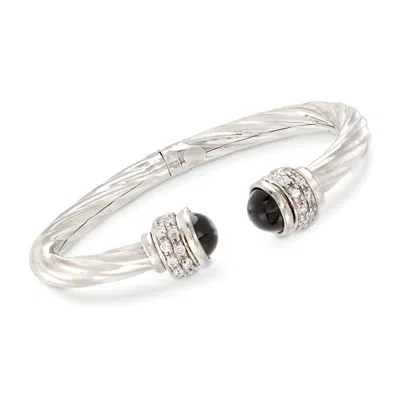Italian Black Onyx And Cz Twisted Cuff Bracelet In Sterling Silver In Multi