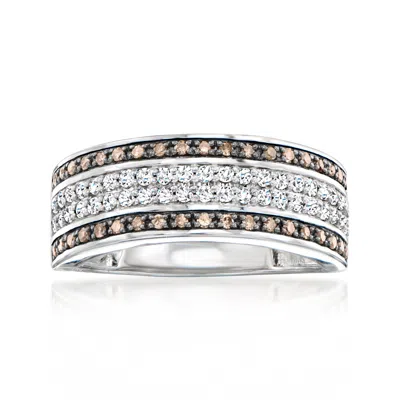 White And Brown Diamond Multi-row Ring In Sterling Silver In Metallic