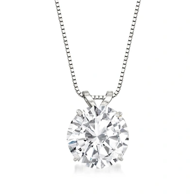 Cz Solitaire Necklace In 14kt White Gold In Silver