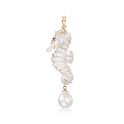 Mother-of-pearl Seahorse Pendant With 9mm Cultured Pearl In 14kt Yellow Gold In White