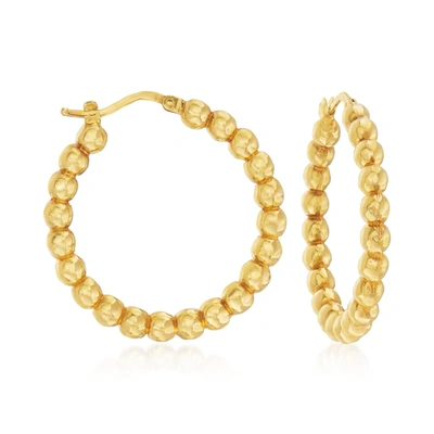 Italian 14kt Yellow Gold Beaded Hoop Earrings In White