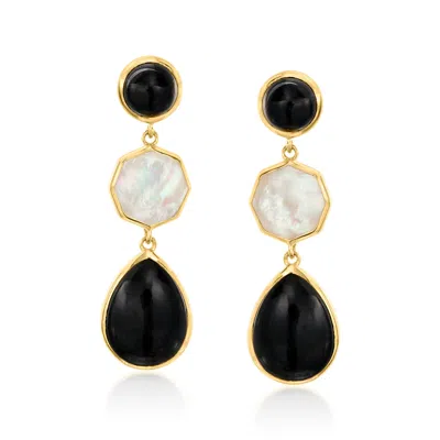 Onyx And Mother-of-pearl Geometric Drop Earrings In 18kt Gold Over Sterling In Multi