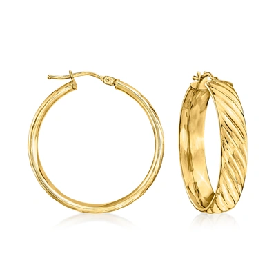 Italian 14kt Yellow Gold Textured And Polished Lace Hoop Earrings