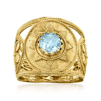 Italian . Sky Blue Topaz Etruscan-style Ring In 14kt Yellow Gold