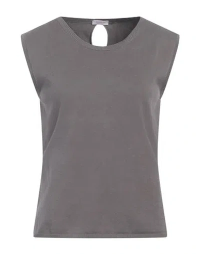 Woman T-shirt Charcoal Size L Cotton In Brown