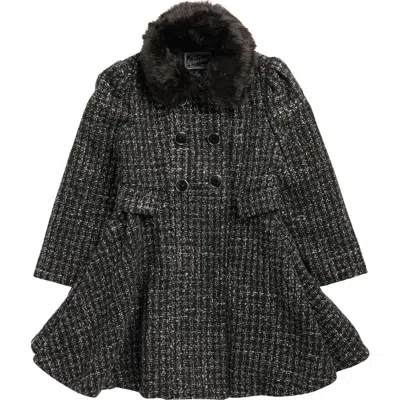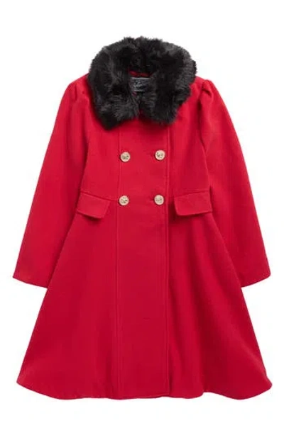 Kids' Princess Faux Fur Collar Double Breasted Tweed Coat In Red