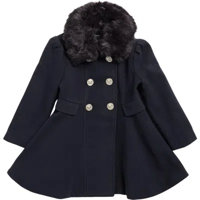 Kids' Princess Faux Fur Collar Double Breasted Coat In Blue