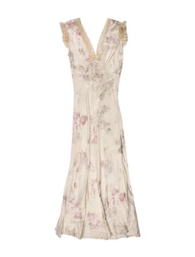 Pre-owned Silk Lace Trim Embellishment Nightgown In Gray
