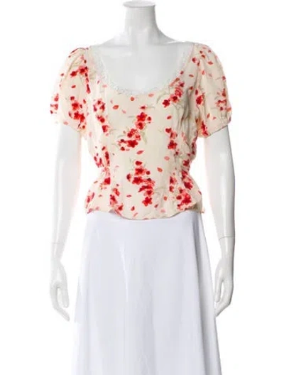 Pre-owned Floral Print Short Sleeve Blouse In Red