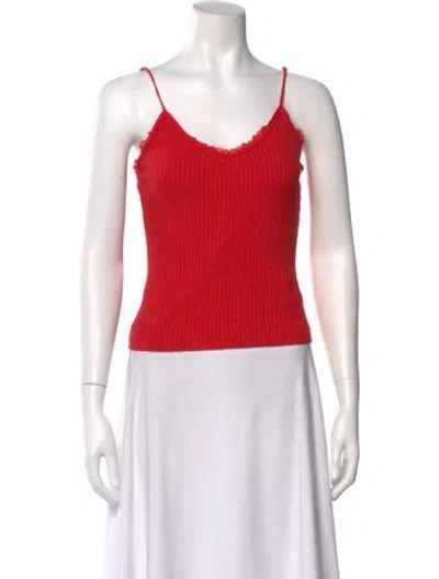 Pre-owned V-neck Sleeveless Crop Top In Red