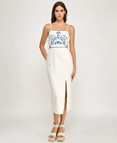 Juniors' Sleeveless Embroidered Scallop Bust Midi In White