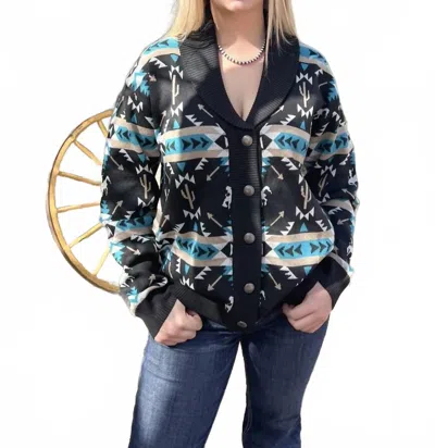 Cattleman Cardigan In Black Teal Turquoise In Multi