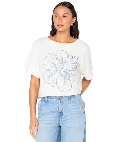 Juniors' Stitched Bloom Cropped Cotton T-shirt In White