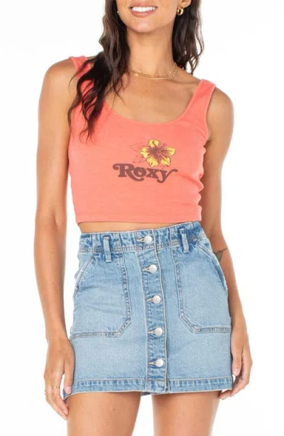 Valmos Rib Crop Graphic Tank In Sugar Coral Solid
