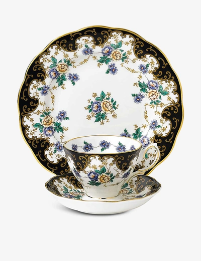 Old Country Roses Bone China 3-piece Tea Set In Blue