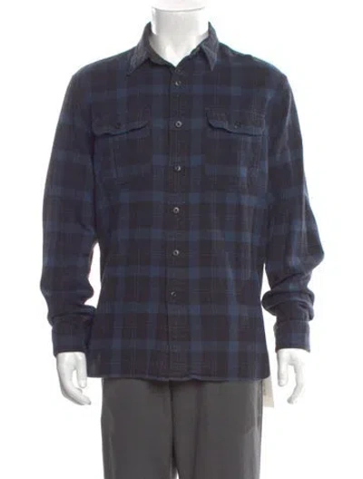 Pre-owned Plaid Print Long Sleeve Western Shirt In Blue