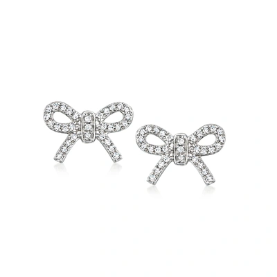 By Ross-simons 0. Diamond Bow Stud Earrings In Sterling Silver