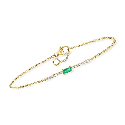 By Ross-simons Emerald And . Diamond Bar Bracelet In 14kt Yellow Gold