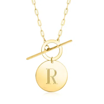 By Ross-simons Italian 14kt Yellow Gold Personalized Disc Toggle Paper Clip Link Necklace
