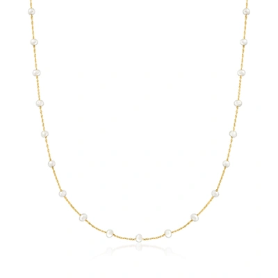 Ross-simons 3-3.5mm Cultured Pearl Station Necklace In 14kt Yellow Gold In White