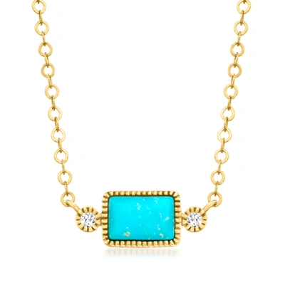 By Ross-simons Turquoise Necklace With Diamond Accents In 14kt Yellow Gold In Multi