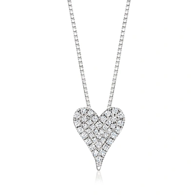 By Ross-simons Pave Diamond Heart Necklace In Sterling Silver In Multi