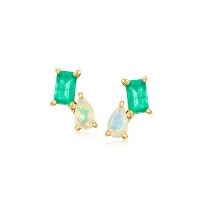 By Ross-simons Opal And . Emerald Toi Et Moi Earrings In 14kt Yellow Gold In Green