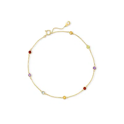 By Ross-simons Multi-gemstone Station Anklet In 14kt Yellow Gold