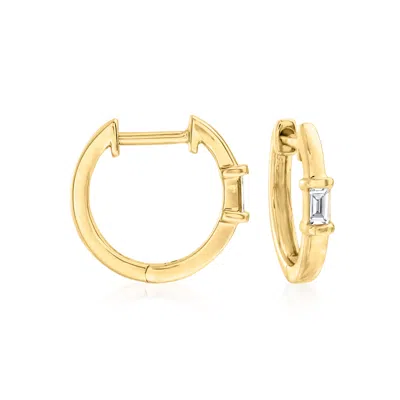 Ross-simons Baguette Diamond-accented Huggie Hoop Earrings In 14kt Yellow Gold In White