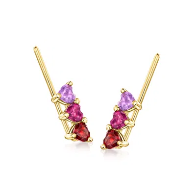 By Ross-simons Multi-gemstone Heart Ear Climbers In 14kt Yellow Gold In Red