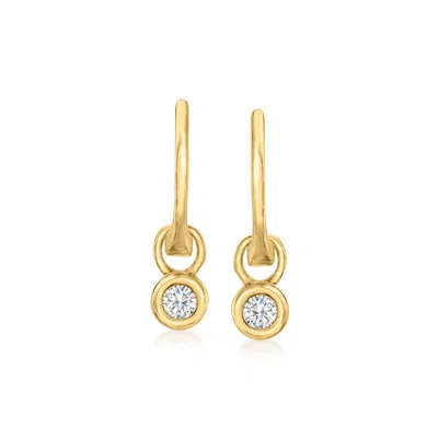Ross-simons Bezel-set Diamond Hoop Drop Earrings In 14kt Yellow Gold In White
