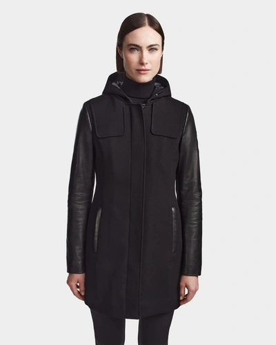 Celeste Women's Coat With Leather Sleeves In Black