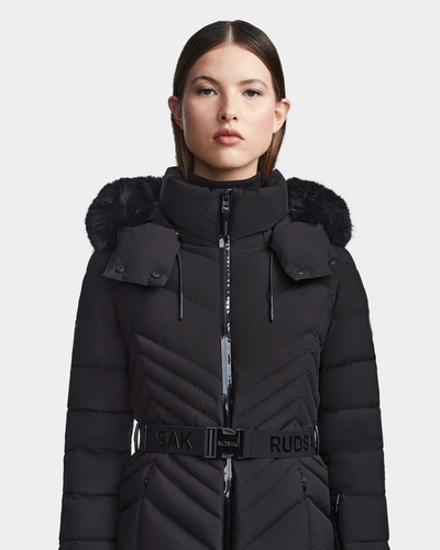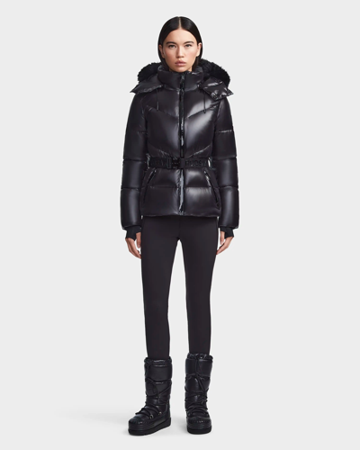 Juliana Women's Down Puffer With Faux Shearling Trim In Black