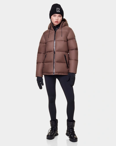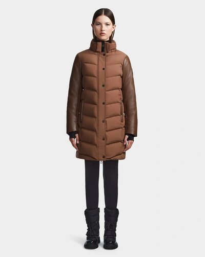 Donia Women's Fitted Velvet Down Puffer With Removable Sleeves In Brown