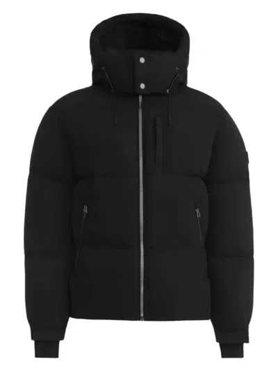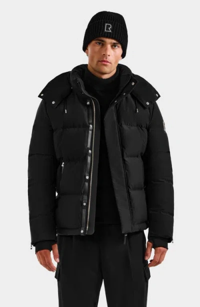 Ricky Men's Quilted Down Parka With Hood With Recycled Leather Sleeves In Black