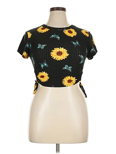 Pre-owned Short Sleeve Top Black Keyhole Neckline Tops