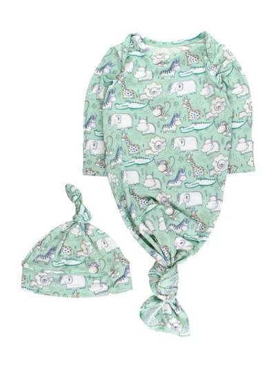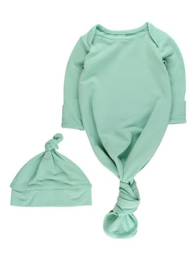 Kids' Knotted Sleep Gown & Hat Set In Green