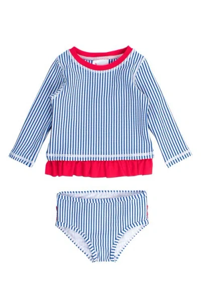 Kids' Upf50+ Seersucker Long Sleeve Rash Guard Ruffle Shorts 2-piece Swimsuit In Blue