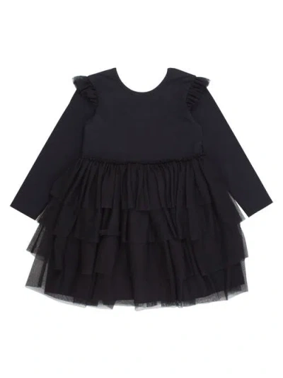 Babies' Toddler Girls Flutter Tulle Long Sleeve Twirl Dress In Black