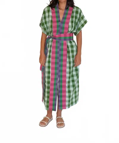 Naya Kaftan Dress In Watermelon Chex In Green