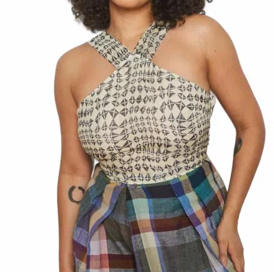 Rita Top In Illusion Block Print In Brown
