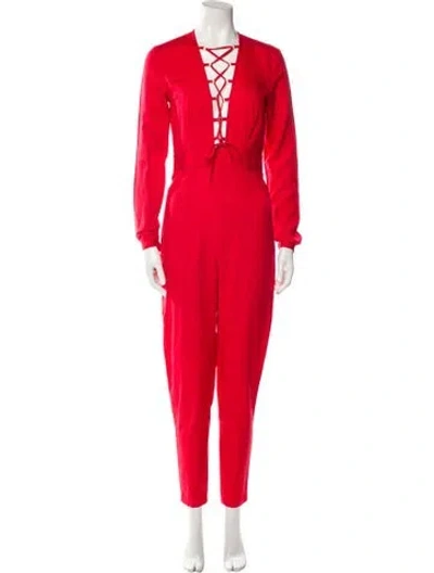 Pre-owned Square Neckline Jumpsuit In Red