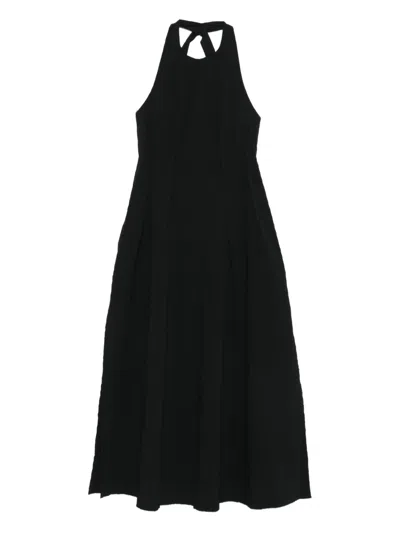 Halter-neck Pleated Midi Dress In Black