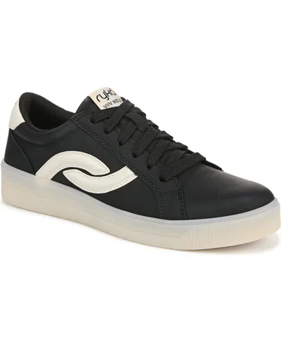 Women's Viv Next Court Lace Up Inspired Sneakers In Black Faux Leather