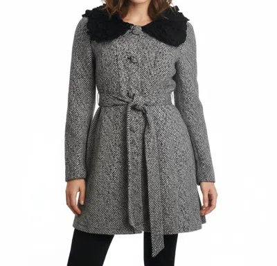 Flower With Waist Tie Collar Jacket In Black
