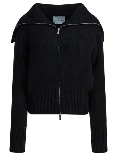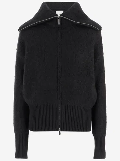 Mohair Blend Bomber Fit Pullover With Front Zip In Brown