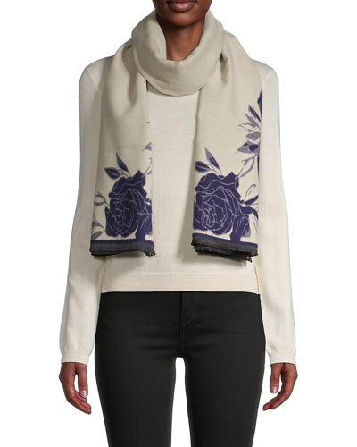 Floral Wool Scarf In Ivory