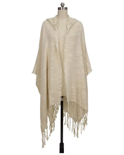 Hooded Fringe Cotton Ruana In Grey