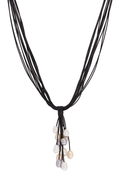 8-10mm Pearl Classic Leather Necklace In Black